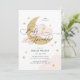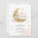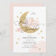 Invitation Lune et étoiles Matte Pink Script Baby Sprinking