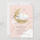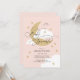 Invitation Lune et étoiles rose Élégant Script Bébé Parsemer