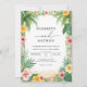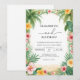 Ce design évoque un paradis animé, avec une abondante arcade débordant de feuillage tropical luxuriant et de fleurs colorées. L'imagerie suggère une atmosphère chaude et exotique parfaite pour une destination ou une cérémonie au bord de la plage. Il apporte une sensation de beauté naturelle festive à toute occasion.