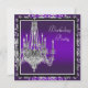 Modèle d'invitation à une fête d'anniversaire avec un lustre en cristal et damas violet élégant. Cette belle invitation de fête violette et grise argentée est facilement personnalisable pour votre événement en choisissant simplement le bouton "Personnalisez-le !" pour commencer à ajouter les détails de votre événement, le style de police, la taille et la couleur de la police, ainsi que le libellé. Veuillez noter que tous les autocollants, cartes et modèles d'invitation que vous trouverez sur Zazzle sont des graphiques imprimés sans véritables bijoux, rubans, parties ou pièces en relief, en creux ou ajoutées. com