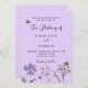 Un arrière - plan violet. Décoré d'abeilles et de fleurs sauvages peints dans le violet et le rose. Personnalisez et ajoutez vos noms et les détails.
