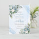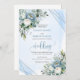 Invitation Luxe Dusty Bleu Blanc Fleurs d'argent Mariage