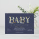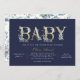 Que vous ne puissiez pas vous rassembler pour une fête en raison des directives de distanciation sociale coronavirus, ou que la famille et les amis de longue distance sont juste trop loin, ce magnifique Baby shower par invitation par courrier permettra à des proches de célébrer votre nouveau bébé de n'importe où. Cet élégant design présente une typographie de feuille d'or imitation avec des flores délicates d'aquarelle sur un arrière - plan bleu marine. Utilisez les outils de conception pour ajouter les détails ou la personnaliser de votre baby shower virtuel à votre événement.