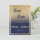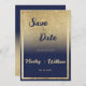 Simple typographie audacieuse avec une marine de luxe bleu et or ombre parties scintillant Mariage Enregistrer la Date invitation est parfait pour toute fille glamour classe et sophistiquée. Ce design est idéal pour un événement de fête branché et élégant. Customisez cette conception avec votre message et des informations personnalisées. Tous les dessins sont imprimés.