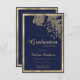 Luxe marine bleu et or fleurs de parties scintillant Cérémonie de graduation. Cette élégante invitation classique à la fête de graduation florale bleu marine est parfaite pour toute fille glamour classe et sophistiquée. Ce design est idéal pour un événement de fête branché et élégant. Customisez cette conception avec votre message et des informations personnalisées. Tous les dessins sont imprimés.