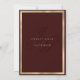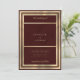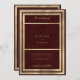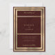 Une élégante élégance chic or et monogramme bordeaux initie des invitations de mariage minimalistes et géométriques de luxe à thème élégant. Ce design minimaliste présente une jolie bordure en or géométrique simple sur un arrière - plan bordeaux. Customisez cette conception avec votre message et des informations personnalisées. Tous les dessins sont imprimés.