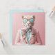 Un chic léopard blanc vêtu d'un somptueux costume rose orné de bijoux, de détails fleuris et d'élégants ornements. Le félin sport des lunettes de soleil rondes et un cravate pastel, qui exsument le raffinement et le glamour.