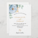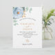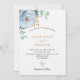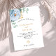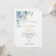 Un arrière - plan blanc chic. Décoré d'un bleu poussiéreux floral, fleur rose et feuilles d'eucalyptus vert aquarellés, sprigs, verdure et un faux doré. Personnalisez et ajoutez vos noms et les détails du mariage. Lettres noires et dorées.