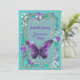 Vous recherchez une invitation élégante et classe pour votre 15ème anniversaire ? Ne cherchez pas plus loin que ce design étonnant qui présente un vert turquoise et violet avec des diamants, des papillons et des bijoux étincelants sur le cadre botanique argenté. Cette invitation est parfaite pour célébrer votre Quinceanera ou Sweet 16 en style. Vous pouvez le customiser avec vos informations et en faire la vôtre. Ne manquez pas cette occasion d'impressionner vos invités avec cette invitation chic et sophistiquée qui reflète votre personnalité et votre goût.