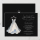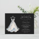 Luxurious Little White Dress Glitter Effect Bridal Shower Invitation Card Design on Black Background, elegant and fun celebration for the bride.