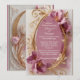 The 'Luxury Baroque Opulent Mulberry Tulip Gold Wedding Invitation card features stunning mulberry tulips, floral motifs that symbolizes love, elegance, and grace in oval setting. Tulips have long been associated with romantic devotion and new beginnings, making them one of the most meaningful flowers for wedding celebrations. The mulberry color palette brings a rich depth to the design. Unlike lighter pink tones, mulberry offers a deeper, more luxurious shade that conveys sophistication, warmth, and romantic intensity. Mulberry tones symbolize passionate love, royal elegance, depth of emotion and romantic luxury. Paired with luminous gold Baroque elements, the mulberry tulips create a stunning contrast that feels both dramatic and elite. Reverse side has a matching design. The text and typography are customizable.