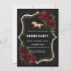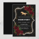 Lush, deep red roses cascade from the corners, providing a romantic contrast to the metallic gold and dark background. The typography uses a bold, classic serif for "DERBY PARTY" to ensure readability, while the glitter effect adds a festive, celebratory energy. This design perfectly captures the "Old Hollywood" or "Great Gatsby" aesthetic, making it ideal for an evening soiree, a black-tie bridal shower, or a sophisticated bachelorette party. It is designed to catch the light and make a statement before the event even begins.