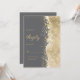 Classy luxury gold sparkle glitter wedding RSVP invitation. Set against a deep green background,