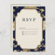 Luxury Ivory Navy Blue Gold Floral RSVP Invitations – Invite your guests in style with this luxurious ivory wedding invitation, adorned with navy blue and gold floral accents. The rich color palette exudes sophistication and timeless elegance. Perfect for a royal or classic-themed wedding celebration.