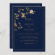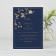 Rich navy blue paired with shimmering gold florals creates a stunning, upscale design.