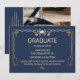 A premium, realistic mockup showcasing a navy blue and gold medical graduation invitation with both front and back views. Perfect for showcasing luxury graduation stationery, doctor of medicine celebrations, and elegant academic announcements. Ideal for designers, print shops, and digital creators who want a high-end presentation for graduation invitation designs.s.