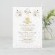 Elegant card design featuring watercolour delicate pink, blush flowers, green and gold leaves, a faux gold cross, faux gold confetti, on a white background. Use Personalize tool to add your info. For matching items, please, visit my Religious Events Collection.