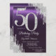 Invitation Luxury Silver Glitter Drips Purple 50th