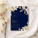 Luxury white gold floral navy blue Wedding invitations timeless blend of elegance and sophistication, this white and gold floral wedding invitation features delicate botanical accents and shimmering metallic details. The refined navy blue backdrop highlights the intricate gold foiling, creating a radiant and romantic impression. Perfect for couples seeking a classic yet opulent design, it sets the tone for an unforgettable celebration. Exquisite craftsmanship ensures every card feels as special as your day.