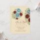 Un design faire-part de mariage étonnant qui présente d'élégantes pivoines bleu Lyons associées à une riche végétation rouge foncé et douce. La palette de couleurs audacieuse et romantique rend ce design idéal pour les couples à la recherche d'un thème floral unique et intemporel. Parfait pour les mariages.