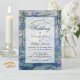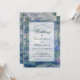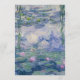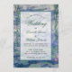 Cette invitation botanique a comme arrière - plan un nénuphar peint par Claude Monet (maintenant dans le domaine public). Le texte est dans un rectangle blanc transparent. L'occasion "Mariage" et les noms sont écrits dans un élégant script calligraphique bleu, le reste en petits casquettes noirs.