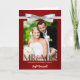 Elégante invitation de mariage pour les jeunes mariés qui ont fui ou ont eu un petit mariage de destination. Fait dans un élégant imprimé rouge avec arc en argent et place pour la photo du couple et les noms sur le devant. À l'intérieur, annoncez les détails de votre union juste mariée et amis et famille invitations pour se joindre à la célébration de votre mariage.