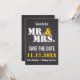 M. et Mme typographie moderne noire, annonce de mariage à la craie jaune Save the Date avec les titres de courtoisie M. et Mme en blanc, l'esperluette en jaune et le point en blanc avec un cœur doré à l'intérieur. Ce design de modèle de mariage moderne élégant et contemporain a une touche rustique vintage. C'est amusant et tendance et fait partie d'une collection ou d'un ensemble de mariage entièrement personnalisable, parfait pour un mariage d'hiver.