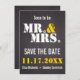 M. et Mme typographie moderne noire, annonce de mariage à la craie jaune sur tableau noir "Save the Date" avec les titres de courtoisie M. et Mme en blanc, l'esperluette en jaune et le point en blanc avec un cœur doré à l'intérieur. Ce modèle de mariage moderne, élégant et contemporain a une touche rustique vintage. C'est amusant et tendance et fait partie d'une collection ou d'un ensemble de mariage entièrement personnalisable, parfait pour un mariage d'hiver.