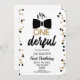 C'est une invitation à thème M. ONEderful First Birthday Party 1er avec un design de parties scintillant noir blanc et or. Une parties scintillant d'or noir blanc arc-cravate cravate