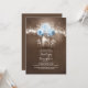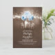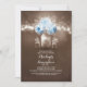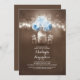 L'invitation à la douche nuptiale rustique comprend des lampes à cordes accrochées à la branche de l'arbre et de mignonnes petites jarres en maçon avec des roses bleus et des fleurs d'haleine pour bébé. Le pot de mason peint à la main dans le centre a un coeur d'amour mignon et les initiales du couple dessus. D'autres jarres de mason ne retiennent que les respirations de bébé blanc. Idéal pour invitation pour la douche de campagne rustique avec fleurs turquoise. Jolie invitation à la douche nuptiale extérieure avec lumières scintillantes, lucioles et jarres de mason fleuris.