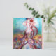Élégant, coloré, chic et fantaisiste design aux couleurs vives, fuchsia, sarcelle, turquoise, blanc. Belle femme sophistiquée aux cheveux blonds-blanchâtres, tissus dorés scintillants bleus et roses d'un costume baroque avec des plumes et une rose rouge. Peinture originale à l'aquarelle et à l'acrylique avec feuille d'or et couleurs iridescentes sur toile. Cette carte cool et artistique est parfaite pour les mariages, cérémonies nuptiales, douches de mariée, sweet 16, fêtes d'anniversaire de quinceanera, bals costumés, fiançailles romantiques, faire-part "save the date", Noël, fêtes de bureau, réunions de famille, cocktails, célébrations du nouvel an, anniversaires, rassemblements, concerts, récitals ou presque tous les événements que vous souhaitez.