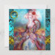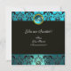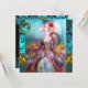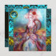 Un design élégant, coloré, chic et fantaisiste dans des couleurs vives, fuchsia, sarcelle, turquoise, blanc avec une pierre précieuse saphir 3D brillante. Belle femme sophistiquée aux cheveux blonds-blanchâtres, tissus dorés bleus et roses scintillants d'un costume baroque avec des plumes et une rose rouge. Peinture originale à l'aquarelle et à l'acrylique avec feuille d'or et couleurs iridescentes sur toile. Cette carte cool et artistique est parfaite pour les mariages, les cérémonies de nuptial, les douches de mariée, les anniversaires de 16 ans, les fêtes de quinceañera, les bals costumés, les fiançailles romantiques, les annonces "save the date", Noël, les réunions de bureau pendant les fêtes, les réunions de famille, les cocktails, les célébrations du Nouvel