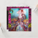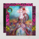 Conception élégante, colorée, chic et fantaisiste dans des couleurs vives, fuchsia, sarcelle, turquoise, blanc avec une pierre précieuse saphir 3D brillante. Belle femme sophistiquée aux cheveux blonds-blanchâtres, tissus dorés bleus et roses scintillants d'un costume baroque avec des plumes et une rose rouge. Peinture originale à l'aquarelle et à l'acrylique avec feuille d'or et couleurs iridescentes sur toile. Cette carte cool et artistique est parfaite pour les mariages, les cérémonies nuptiales, les douches de mariée, les anniversaires de 16 ans, les fêtes d'anniversaire de quinceañera, les bals costumés, les fiançailles romantiques, les annonces de sauvegarde de la date, Noël, les réunions de bureau pour les fêtes, les réunions de famille, les cocktails, les célébr