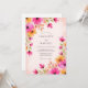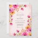 This design features a vibrant watercolor palette of magenta, fuchsia, and marigold blooms. Delicate floral sprigs resembling cosmos and wildflowers dance across a soft peach-washed background. The ethereal and airy aesthetic creates a joyful mood perfect for a warm-weather event. Lush greenery and botanical stems add an organic, nature-inspired touch to the artistic composition.