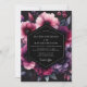 Embrace a dramatic and moody aesthetic for your nuptials. This elegant design features a vibrant painterly arrangement of magenta and deep purple anemones with lush petals. The flowers burst forth from a deep charcoal background, creating a stunning contrast and a sense of romantic opulence. Perfect for an autumn or winter affair with a touch of modern drama.