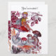 Follet magique coloré et fantaisiste des bois enchantés assis sur un champignon rouge entouré de feuilles d'automne violettes, jaunes et brunes, de marrons et de baies. Peinture à l'aquarelle 2010 par Alessandro Lumini. Design élégant, chic et unique facile à personnaliser pour un mariage, une annonce de nuptialité, des cartons de table, des remerciements, des fêtes de bébé, des fêtes d'anniversaire d'enfant, des fêtes de fiançailles, des sweet 16, des anniversaires de mariage, des fêtes d'engagement romantique, Noël, vacances, bureau, réunions de famille, célébrations du Nouvel An, rassemblements, remises de diplômes, concerts, récitals ou presque tous les événements que vous souhaitez !