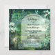 Un mariage irlandais fantaisiste ou une invitation à l'anniversaire avec une scène de conte de fées vert sage avec des fleurs donnant sur un paysage verdoyant. Un modèle de code QR auquel vous pouvez facilement accéder à votre propre site Web est ajouté pour votre commodité.