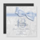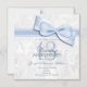 Cartes d'invitation élégantes et stylées pour les 13 ans de mariage du couple. Célébration de treize années passées ensemble. Invitations de mariage avec dentelle sophistiquée et à la mode. Beau motif de damas blanc en arrière-plan avec une jolie image d'un ruban et d'un nœud bleu stylé. Ces invitations glamour, chic et classe sont d'une sophistication raffinée et sont décorées/imprimées sur le recto uniquement. Veuillez noter : tous les produits sur Zazzle ont des images imprimées à plat. Images de ruban et de nœud achetées auprès de digital-designs-by-elena. Tous les textes, tailles de police et couleurs de police sont entièrement personnalisables. Ce sont de belles invitations avec des couleurs bleues mignonnes. Parfait pour les événements de printemps/été, mais peuvent être utilisées pour n'importe quelle saison. Un design moderne et élégant avec une apparence romantique sophistiquée. Si vous avez besoin d'aide pour personnaliser votre produit, veuillez