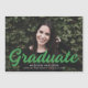 Annonce de remise de diplôme simple et élégante sous forme d'aimant avec la photo horizontale du diplômé et le mot "Diplômé" dans une écriture verte grasse. Personnalisez l'annonce de remise de diplôme avec photo en ajoutant le nom du diplômé, le nom de l'école et l'année de remise de diplôme.