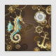 Invitation Magnétique Arrière - plan en bois avec cheval de mer mécaniqu