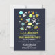 Invitation de fête d'anniversaire sur papier magnétique. Conçu avec un motif mignon et coloré avec toutes sortes d'éléments thématiques de l'espace. Les images comprennent des astronautes flottant dans leurs combinaisons spatiales blanches. Étoiles, planètes et petits navires-roquettes cool, vaisseaux spatiaux et satellites. Design amusant et fou.