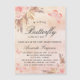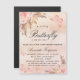 Pour un baby shower de style boho moderne. Un arrière - plan d'or rose, rustique et rustique à l'aspect rustique et rustique. Décoré de fleurs roses d'or et de rose, de roses, d'herbe de pampas et de papillons. Personnalisez et ajoutez un nom et des détails du parti.