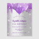 Pour un élégant 18ème anniversaire (ou tout âge). Un arrière - plan élégant à l'allure fausse argent. Décoré de faux parties scintillant violet et de ballons. Personnalisez et ajoutez un nom, un âge et des détails de la fête. Le nom est écrit avec un script de style manuscrit