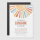 Bienvenue votre petit rayon de soleil avec ce Boho Sunshine Genre Neutre Baby shower Magnétique Invitation avec un adorable soleil jaune, or, orange, bleu et pêche aquarelle.