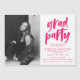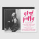 Invités Invitations pour célébrer la grade avec nos invitations magnétiques pour la fête de remise de diplômes photo! Les invitations modernes à la fête de remise de diplômes comportent la photo verticale du diplômé. "Grad Party" s'affiche dans une police de brosse peinte rose chaud. Personnalisez l'invitation de la fête de graduation magnétique en ajoutant le nom du diplômé, le nom de l'école, l'année de remise des diplômes et les détails de la fête de graduation.