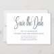 Save the Date est écrit en calligraphie intemporelle. Cette carte postale moderne et minimaliste au fusain gris et blanc, à l'exception de la date, est chic et sophistiquée. Très facile à customiser.