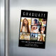 Élégant faire-part de graduation magnétique pour célébrer le diplômé avec "GRADUATE" en haut dans la grande typographie blanche, un collage de sept photos et son nom, l'année de classe et l'école dans la typographie blanche moderne.