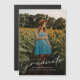 Cette annonce de diplôme de photo élégante et moderne présente un overlay de diplômé en écriture et un nom, une école et une photo personnalisables sur le devant. Le verso est magnétique. Un excellent moyen de mettre en valeur votre diplômé.
