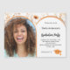 Ajoutez votre propre photo verticale du diplômé. Un cadre photo en arc de cercle couleur pêche foncé. Une couleur arrière - plan blanche chic. Décoré de fleurs sauvages en pêche et beige. Personnalisez et ajoutez un nom et des détails du parti.