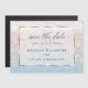 Épargnez la date Magnet | Superbes eaux océaniques scintillantes et étincelantes dans les lueurs du soleil couchant - dans des teintes pâles de rose poussiéreuse et de bleu poussiéreux - le texte apparaît sur un cadre blanc pur à bordure dorée scintillante qui montre le design mais permet de lire facilement le texte. Accentué d'une belle calligraphie manuscrite élégante. Modèle de mariage facile à personnaliser.